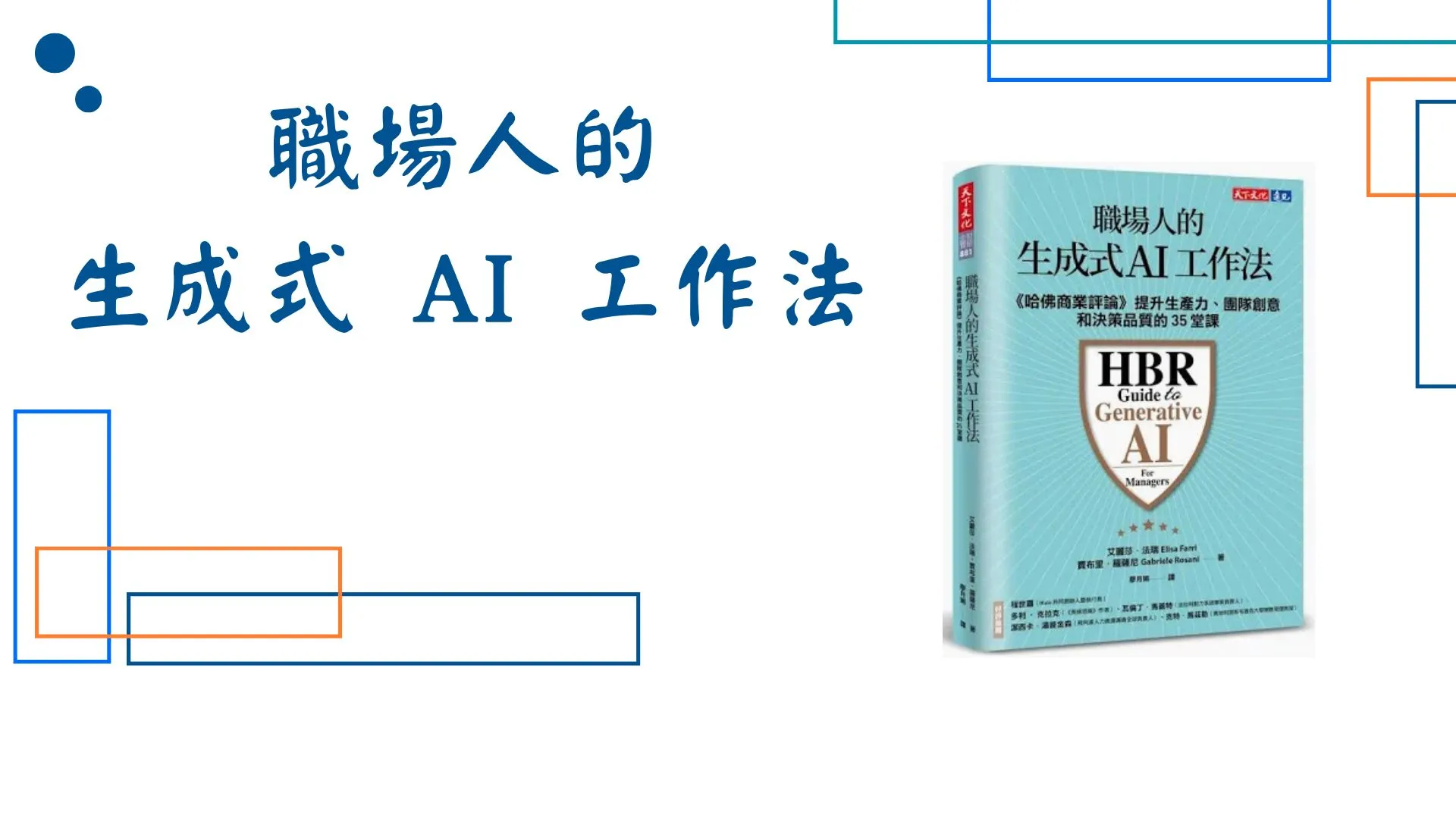 《職場人的生成式AI工作法》的原文書名是 《HBR Guide To Generative AI For Managers》,出自兩位長期為《哈佛商業評論》撰文的管理學者 艾麗莎.法瑞(Elisa Farri)與賈布里.羅薩尼(Gabriele Rosani)。