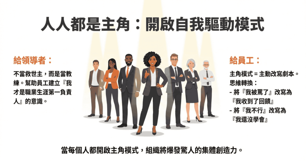 所以作為領導者,真正的領導智慧,在於打破這種依賴,幫助每一位員工開啟「主角模式」。