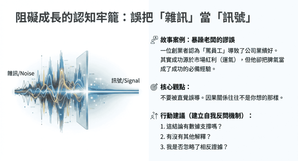發脾氣與成功之間並沒有必然的因果關係,反而可能是阻礙。如果他無法分辨這一點,把雜訊當作訊號,下次創業時繼續複製這種錯誤的「成功經驗」,就很可能會失敗。