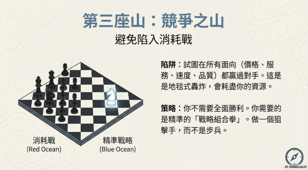 面對這座險峻的「競爭之山」,許多老闆會本能地選擇正面迎戰,陷入無止盡的價格紅海。面對這樣的狀態,《 擠出獲利 》提出了一個重要的提醒,那就是